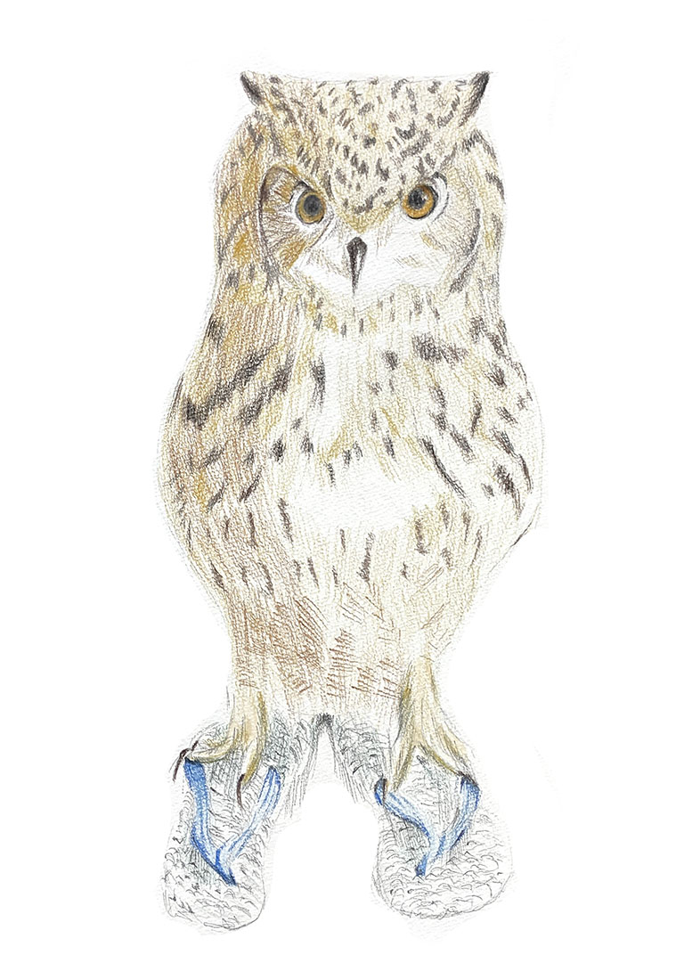 今回のミミズクは沢山の色を重ねて毛並みの微妙な色合いを出しています。
