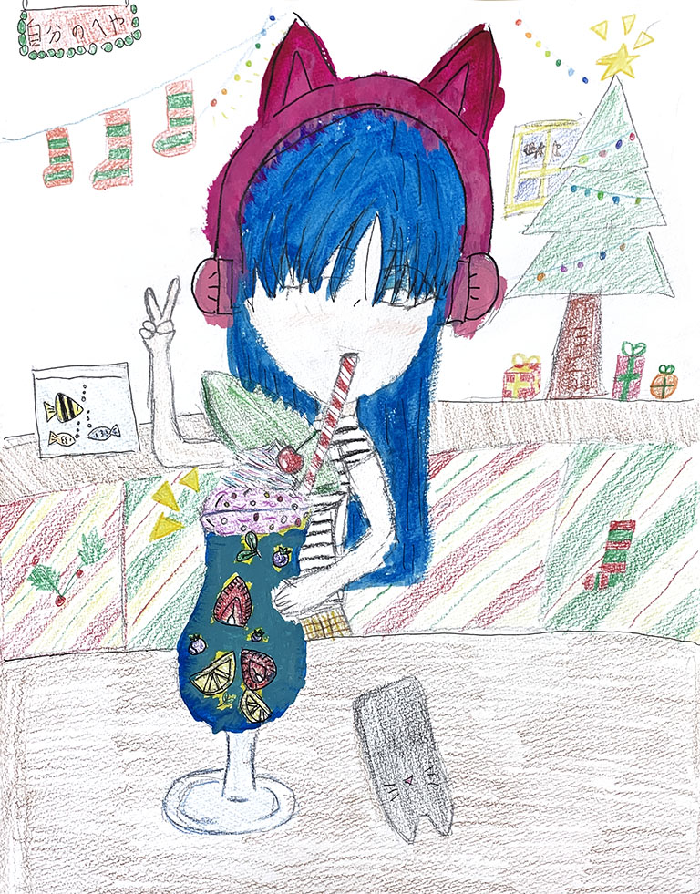 Kさんは自室でクリームソーダを美味しそうに飲で嬉しそうなクリスマス!!