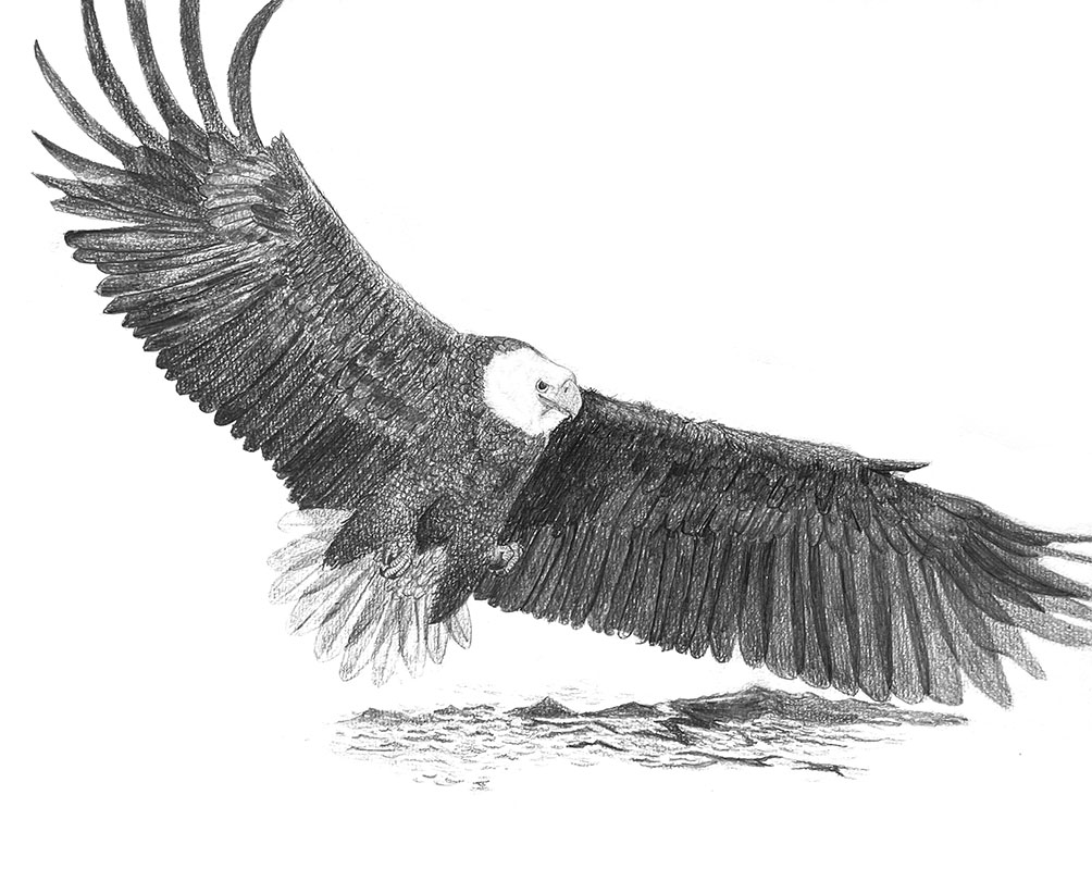 今回のワシでは羽を一本一本丁寧に描き上げ、